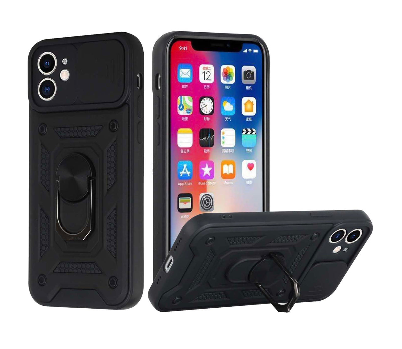 iPhone 14 PRO MAX 6.7" ELITE Camera Push Magnetic Ring Stand Hybrid Case Cover - Black