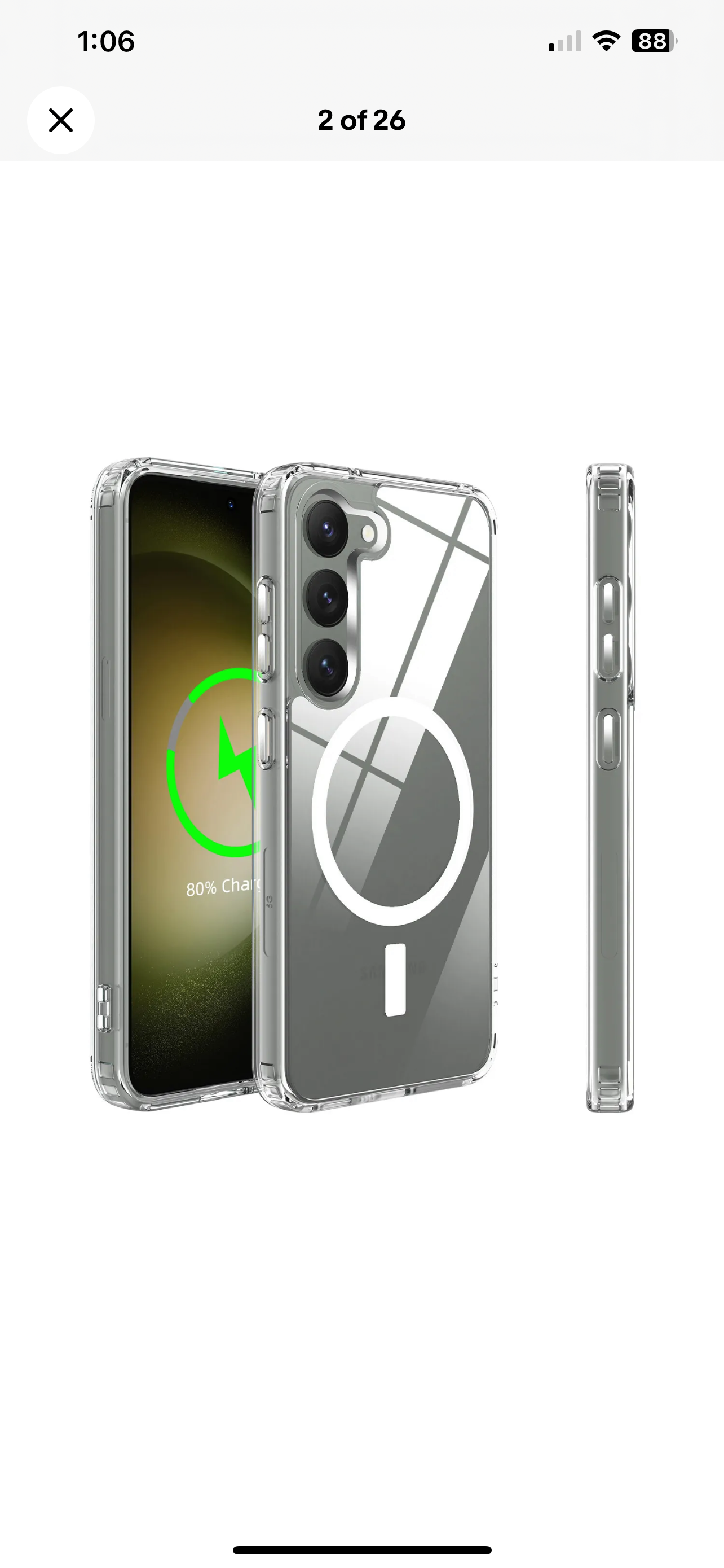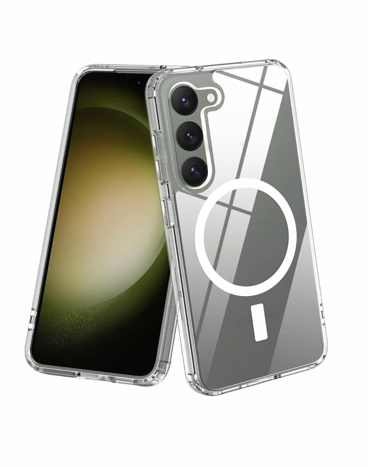 This case for Galaxy S23 is compatible with Mag Safe wireless charger (NOT Included). Built-in magnets automatically aligned with wireless charger. It has stronger magnetic adsorption force without signal interference.
