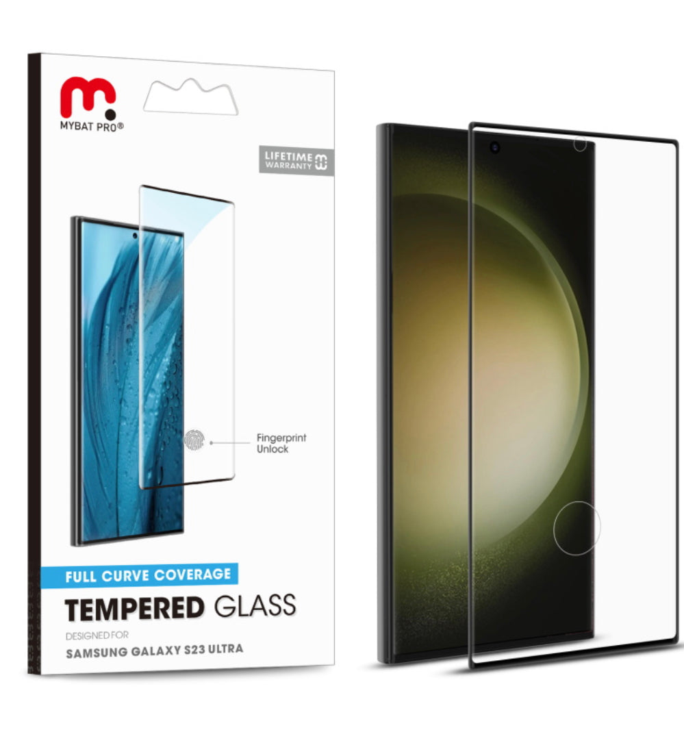 Samsung Galaxy S23 Ultra MyBat Pro Full Curve Coverage Tempered Glass Screen Protector Black